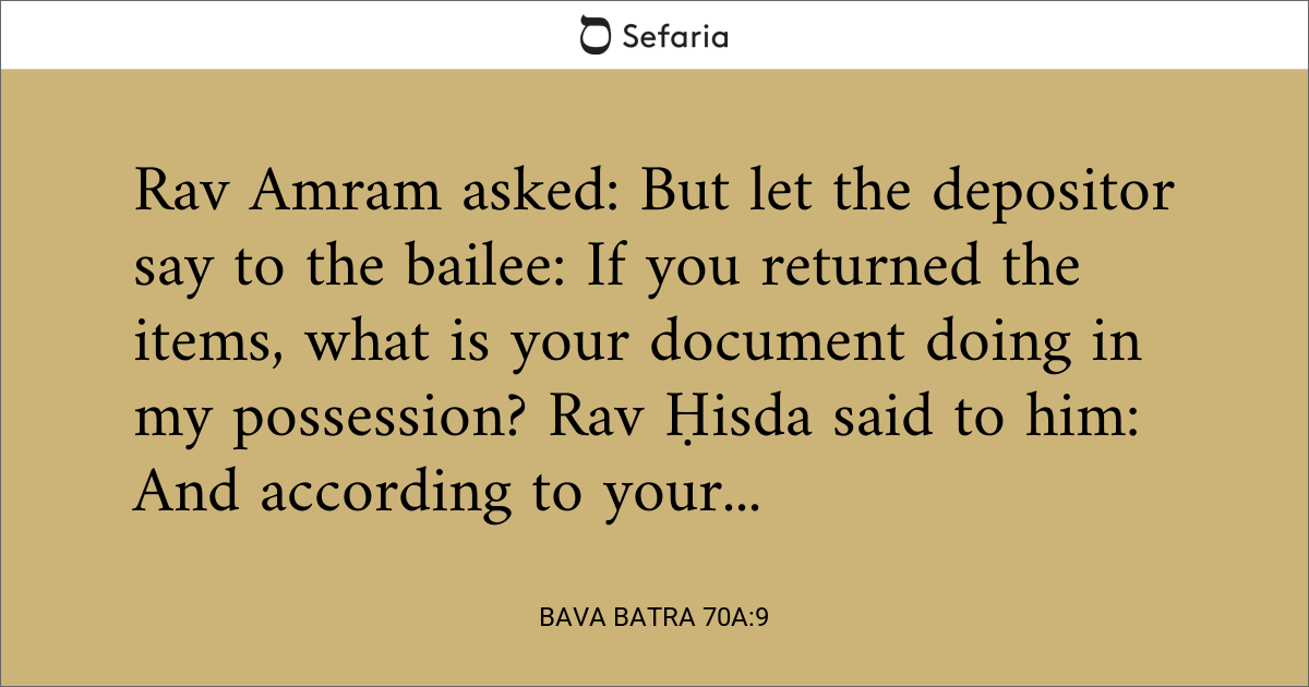 6. poiché i documenti legali sono di grande importanza nei problemi trattati nelle tre Bava, viene aggiunto un capitolo contenente la normativa relativa alla scrittura di tali documenti. Di interesse una particolare norma che definisce la differenza tra "ghet pashuṭ", un semplice documento non piegato, e "ghet meḳushshar", un documento piegato. Quest'ultimo viene preparato nel modo seguente: quando una o due righe sono state scritte la pergamena è piegata e un testimone firma sul retro del documento; l'operazione viene ripetuta tante volte quante ne aggradano alle parti interessate. Questo metodo, che richiede un tempo più lungo per l'esecuzione del documento stesso, si dice sia stato originariamente introdotto per la scrittura di una lettera di divorzio, in casi di mariti frettolosi e passionali (specialmente per i sacerdoti ai quali era proibito dalla legge di risposarsi con le mogli che avevano divorziato) in modo da dar loro tempo di calmarsi (B. B. 160b). La massekta (trattato) di ciascuna delle tre Bava si chiude con un commento generale sul valore educativo dello studio del diritto civile.
